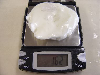 重さは、左の写真のとおりです。非常に軽いパテができます。