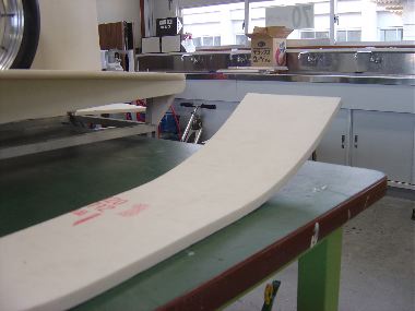 「※ネ※イトフォーム スーパーEI」は発泡体であるため、圧力をかけると、気泡が潰れ写真のように曲面が作れる。