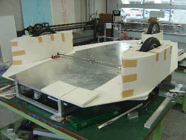 ソーラーカー タイヤスカートの製作「※ネ※イトフォーム スーパーEI」を使いスカート部を製作した。