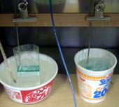 ![]() カップメンの容器を使って、加熱処理 |