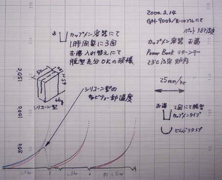 ![]() シリコーン型の内部温度を測定。 |