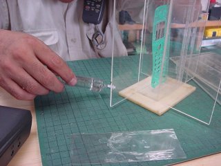枠の大きさ確認。(デシケータ内部の高さもポイント。) |